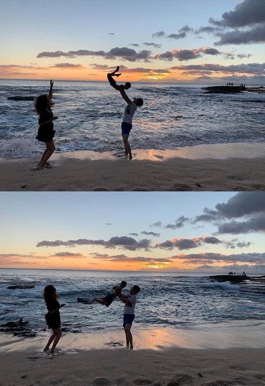 공개된 사진 속 김효진은 남편 유지태, 아들과 함께 바다를 배경으로 행복한 시간을 보내고 있다. 유지태는 아들을 번쩍 들어올리고 있으며 이를 지켜보는 김효진의 모습이 훈훈한 분위기를 자아내 눈길을 사로잡는다.