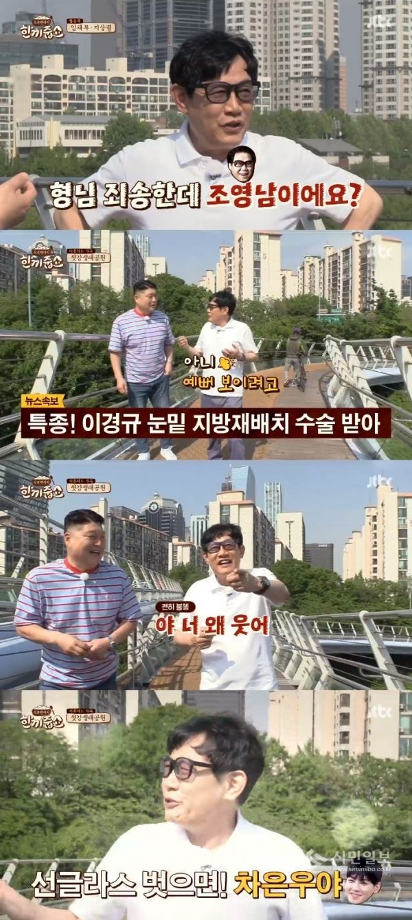이에 이경규는 "시청자에게 양해를 구해야겠다. 눈 밑에 지방 재배치 수술을 했다"고 운을 뗐다.