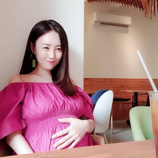 사진 속 별은 핑크색 오프숄더 드레스를 입고 카페에 앉아있는 모습이었다. 만삭의 배에 손을 얹고 미소짓기도 했다.