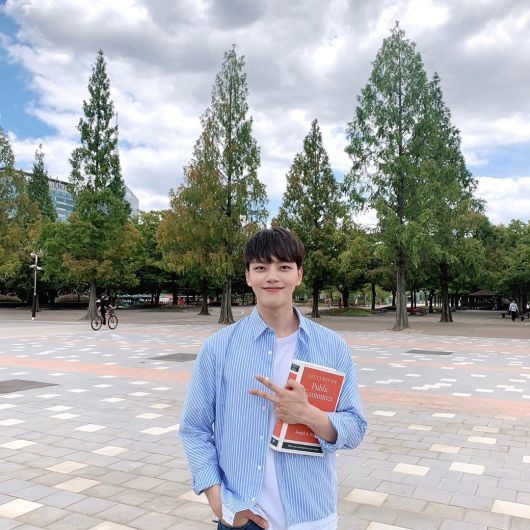 공개된 사진 속 여진구는 책을 들고 브이 포즈를 취하고 있는 모습이다. 그는 스트라이프 셔츠를 입고 훈훈한 대학생 패션을 선보여 눈길을 끈다.