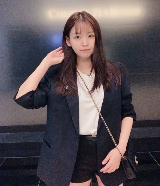 공개된 사진 속 레이나는 남색 재킷에 블랙 숏팬츠를 매치했다. 무엇보다 31세지만 20대 같은 동안 외모가 눈길을 사로잡는다.