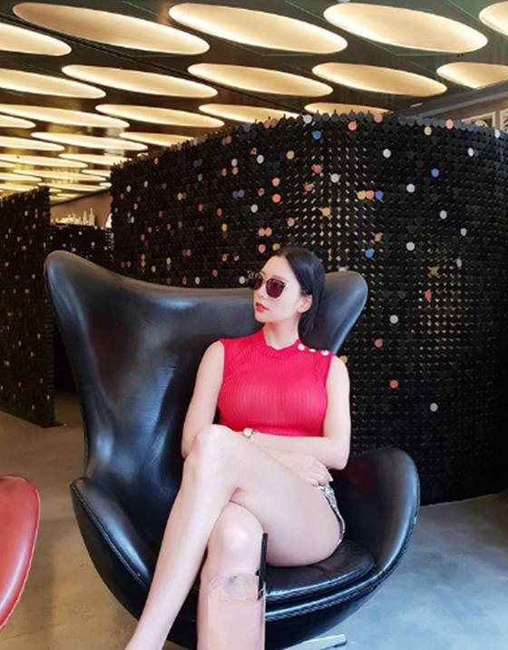 클라라는 11일 자신의 인스타그램에 두 장의 사진을 게재했다. 사진 속 클라라는 의자에 앉은 채 다리를 꼬고 있다.