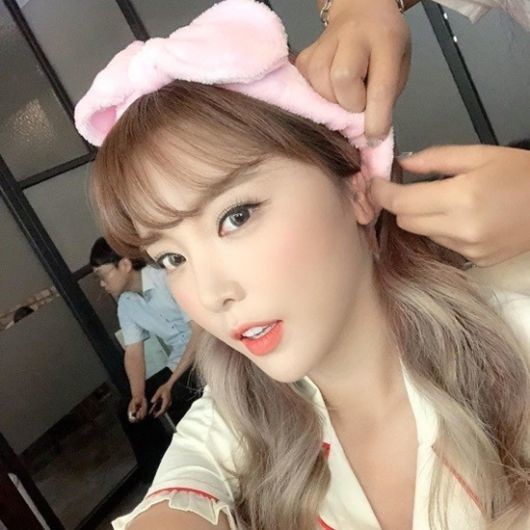 공개된 사진 속 홍진영은 잠옷을 입고 기초 메이크업만 완성된 상태로 셀카를 찍고 있다.