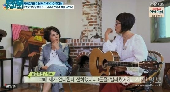 남궁옥분과 권성희는 함께 노래를 부르며 옛 추억에 빠졌다. 남궁옥분은 "1987년도에 집을 사는데 그 당시에 500만원이 부족했다"며 "언니(권성희)한테 전화를 했는데, 언니가 빌려줬다"고 말했다.