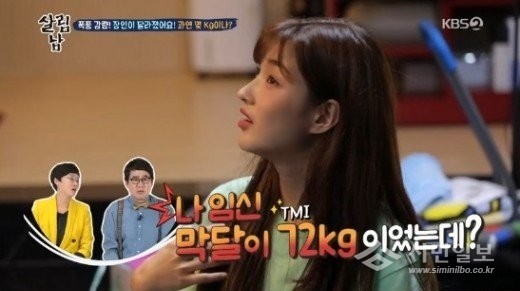 최민환 장인은 "내 목표가 72kg"라고 설명했다. 이 말에 율희는 "짱이 가졌을 때 막달에 72kg였다"고 고백했다.
