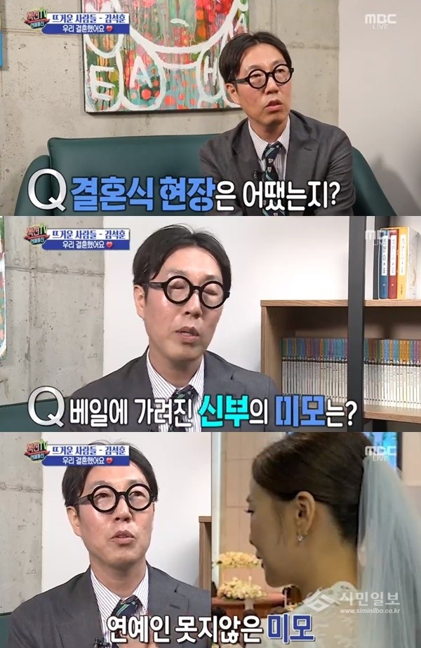 이날 방송인 김영철은 "교회 친한 형이 김석훈"이라며 인연을 밝혔다. 그는 "비연예인 신부는 처음 봤다. 보자마자 연기자로 생각했을 정도로 아름답다. 배우 못지않은 출중한 외모"라고 밝혔다.