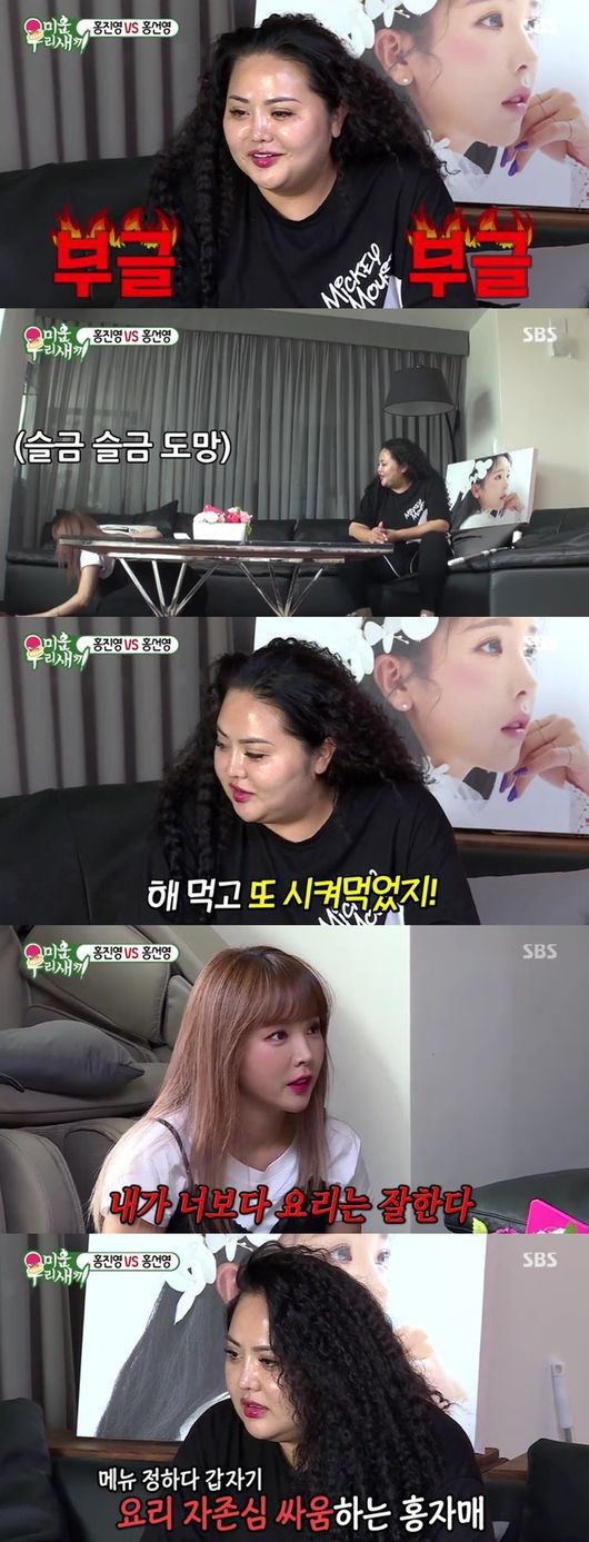 이내 두 사람은 점심 메뉴를 전하던 중 요리 자존심이 펼쳐졌다. 홍진영은 "내가 언니보다 음식 잘한다"고 하자, 홍선영은 "내가 너보다 많이 먹어온 날이 많아, 내 미각은 홍금이다"고 했다. 홍진영은 "홍금보 아니고?"라며 공격, 갑작스런 공격에 홍선영이 당황했다.