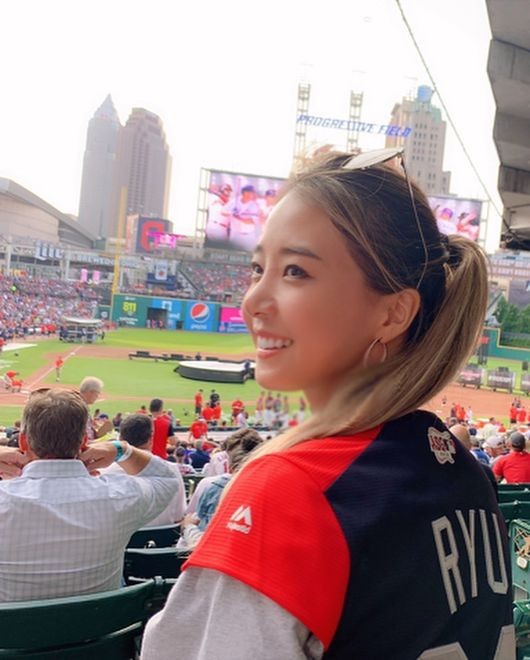 공개된 사진 속 배지현은 류현진이 등판한 올스타전을 관람 중이다. 긴 머리를 높게 묶은 배지현은 카메라를 향해 환히 웃고 있다. 그의 눈부신 미모가 시선을 끈다.
