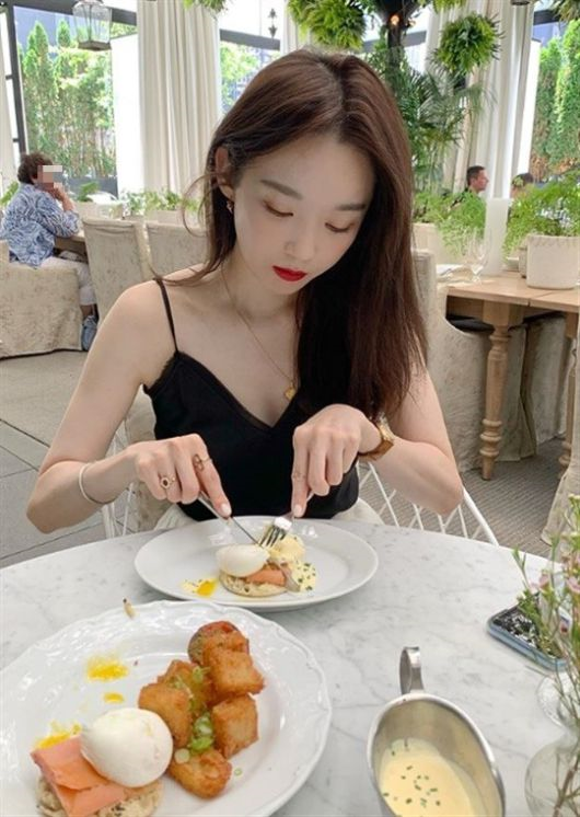 공개된 사진 속 강민경은 미국 여행을 즐기고 있다. 음식을 먹고 있는 모습조차 여신 같다. 여리여리한 모습이 감탄을 자아낸다.