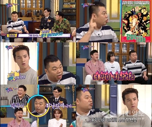 이어 “근데 내가 영화를 찍게 됐다. ‘갈갈이 패밀리와 드라큐라’를 찍는다고 했더니 원빈도 영화를 찍는다고 하더라. 그게 ‘태극기 휘날리며’였다”라고 밝혔다. 또 “한참 휘날리더니 한번 모이자 얘기하더니 영화 스케줄이 있어서 성사되지 못했다”라고 전했다.