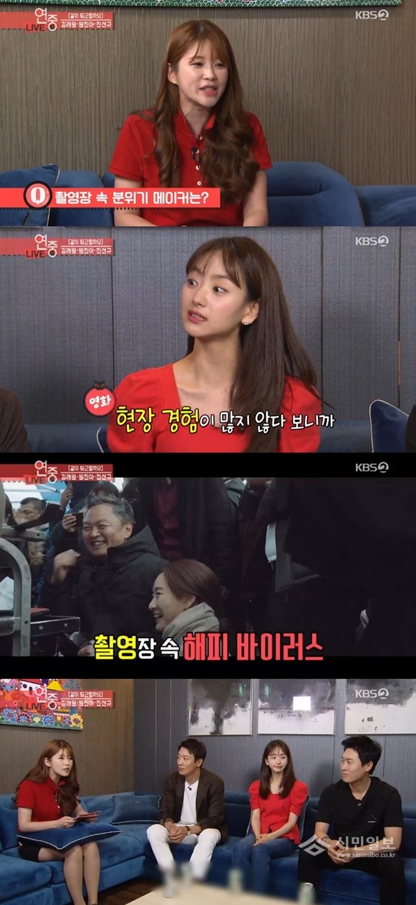 원진아는 "현장 경험이 별로 없다 보니까 항상 신이 나 있고 들떠있기도 하고 그랬다"고 말해 웃음을 자아냈다. 이를 듣던 진선규는 "원진아 씨는 다른 배우들이 촬영할 때도 응원을 하러왔다"고 말했다. 이에 원진아는 "그냥 현장이 좋았다"며 수줍게 말했다.