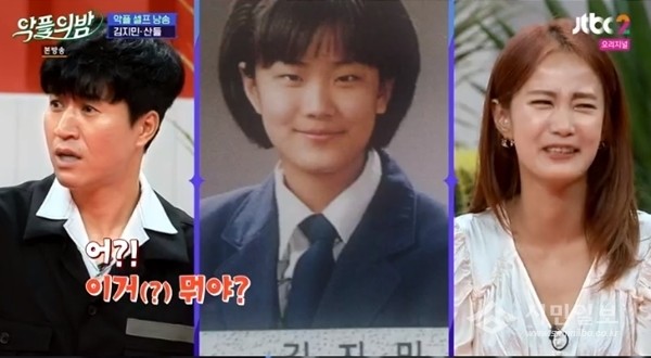이어 김지민의 중학교 3학년 졸업사진이 공개됐다. 이에 김지민은 사진을 가리키며 "지금의 저다. 눈만 가리고 보면 완전 똑같다. 눈은 고등학교에 들어가자 쌍꺼풀이 생긴 것이다. 사실 개그맨 되고 의술의 힘을 빌려 한 번 더 생겼다. 사실 졸업사진 예쁜 사람이 어딨냐"고 목소리를 높였다.