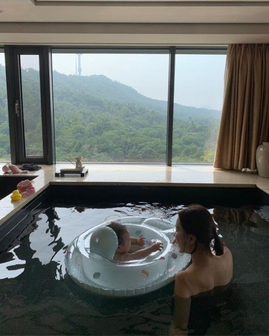 사진 속에는 실내 풀에서 딸과 물놀이를 즐기는 이지혜의 모습이 담겨 있다. 창문 밖에 보이는 푸른 산의 풍경이 감탄을 자아낸다. 딸 태리 양의 폭풍 성장도 눈길을 끈다.