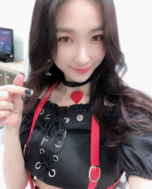 사진 속 박하이는 블랙 컬러의 오프숄더를 입고 레드 컬러의 멜빵과 초커로 포인트를 줬다. 손하트를 하는 박하이의 모습이 눈길을 사로잡는다.