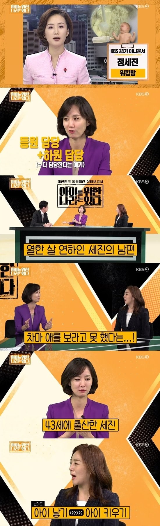 지난 13일 방송된 KBS 2TV ''아이를 위한 나라는 있다'(이하 '아이나라')에서는 정세진과 정다은, 최동석 아나운서의 육아 스토리가 공개됐다.