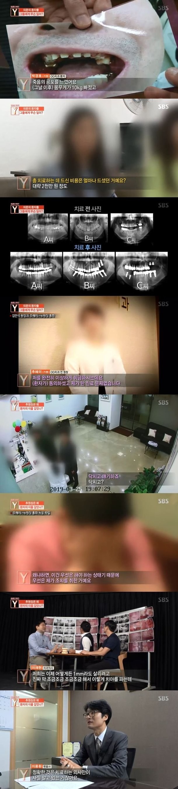 12일 방송된 SBS '궁금한 이야기 Y'에서는 한 치과의 추혜미 원장으로부터 치료를 받은 환자들이 부작용을 호소하는 모습이 그려졌다.