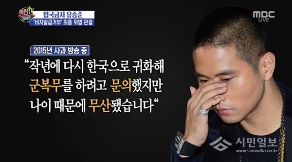 최근 방송된 MBC 예능프로그램 '섹션TV 연예통신'에서는 가수 유승준의 비자 발급 거부가 대법원에서 최종 위법 판결을 받는 내용이 전파를 탔다.