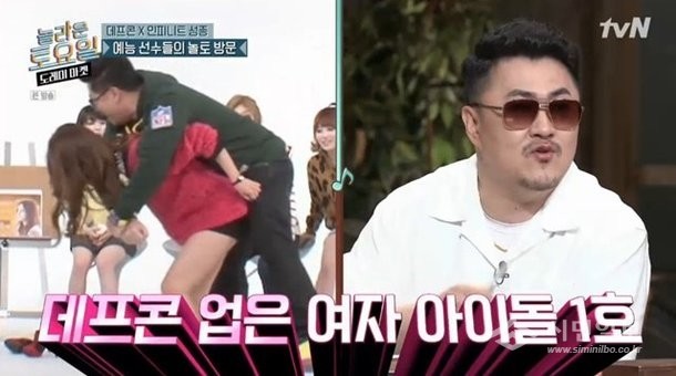 이어 데프콘은 "업어보라고 했더니 진짜 업었다. 날 업은 여자 아이돌 1호다"라고 혜리에게 엄지를 치켜들었다.