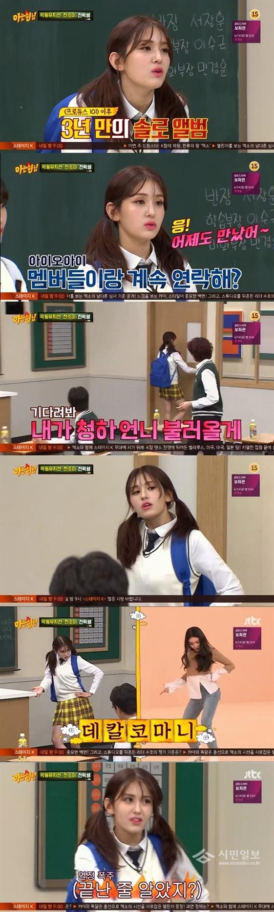 "멤버들이랑 계속 연락해?"라는 강호동에 질문에 전소미는 "어제도 만났어"라고 말했다. 이어 전소미는 자신의 출연을 도와주겠는 청하를 언급하며 아는형님에 와준다고 말해 형님들을 설레게 했다.
