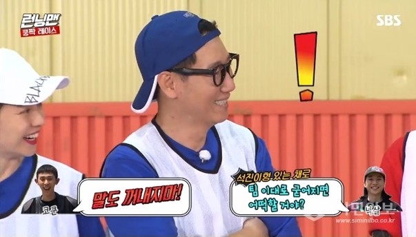 지난 주 에이핑크와 한팀이었던 지석진은 파트너 교체를 통해 넉살과 코드 쿤스트와 한 팀이 됐다. 두번 째 미션인 '체력 노래자랑'이 펼쳐지는 장소에 도착한 멤버들은 새로운 아티스트와 팀을 이룬 소감에 대해 말했다.