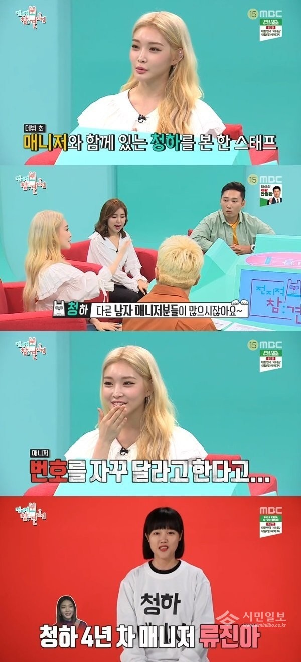 이어 청하는 "다른 남자 매니저분들이 매니저에게 자꾸 번호를 달라고 한다"고 했다. 뒤이어 공개된 청하 매니저는 청아한 외모로 패널들을 놀라게 만들었다.