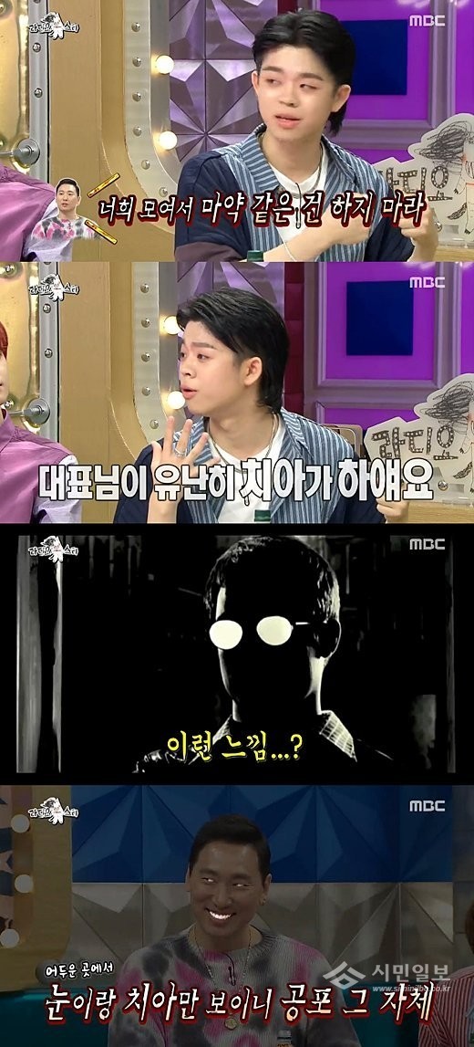 그리는 라이머가 "유난히 치아가 하얗다"며 "눈이랑 치아만 보이니까 너무 무섭더라. '마약은 하지마' 그럴 때 소름 끼쳤다"고 고백했다.