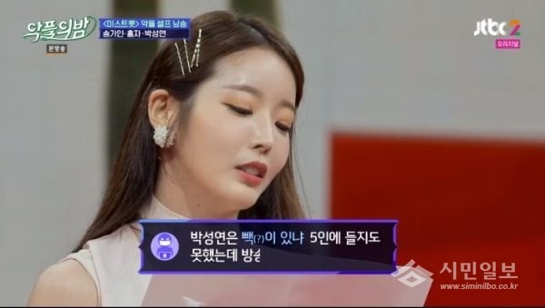 최근 방송된 종합편성채널 JTBC2 예능프로그램 '악플의 밤'에는 '미스트롯' 출신 송가인 홍자 박성연이 게스트로 출연해 다양한 이야기를 나눴다.