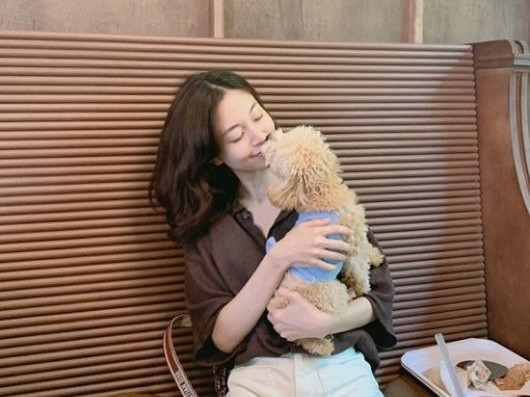공개된 사진에는 반려견과 뽀뽀를 하고 있는 백진희의 모습이 담겨있다.