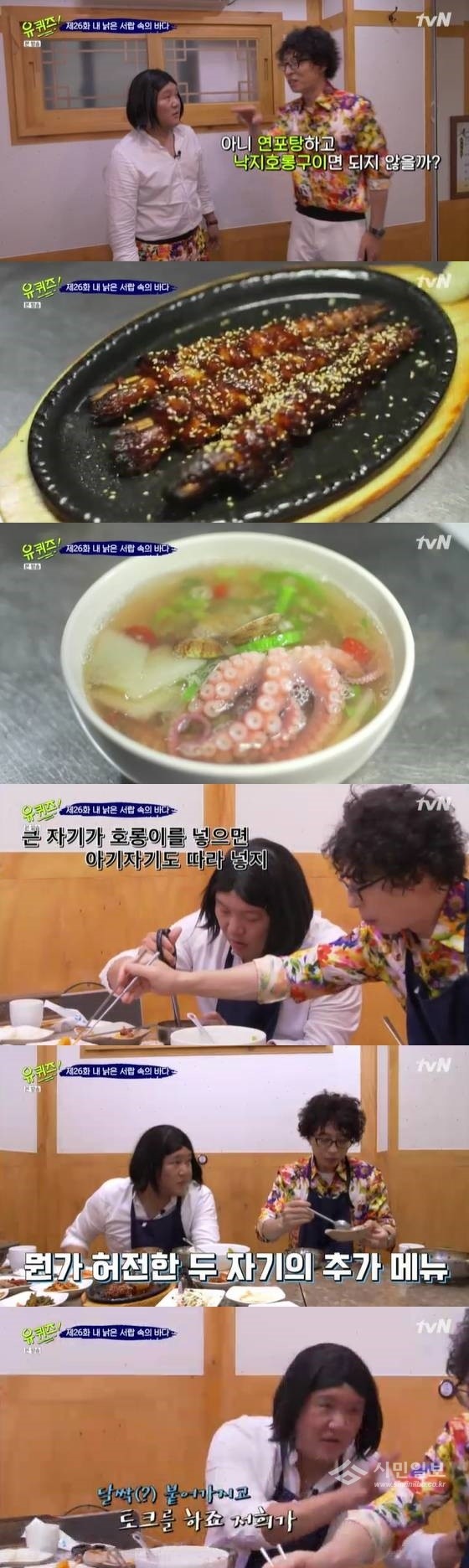 낙지 먹방을 이어나가던 이들은 여전히 출출함을 느껴 낙지 탕탕이까지 추가로 주문했다. 유재석과 조세호는 낙지 탕탕이를 김과 양파에 싸 먹으며 계속해서 감탄을 금치 못했다.