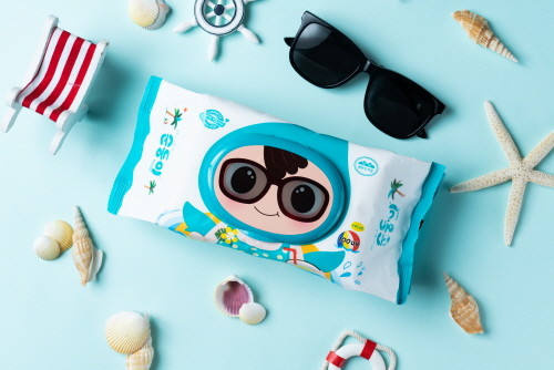 휴양지에서 수영복을 입고 물놀이 하는 순둥이을 컨셉으로 한 패키지 디자인이 적용된 ‘썸머에디션’은 순둥이 물티슈의 베스트셀러인 ‘베이직 무향 엠보싱 플러스(100매)’을 베이스로 제작된 제품이다.