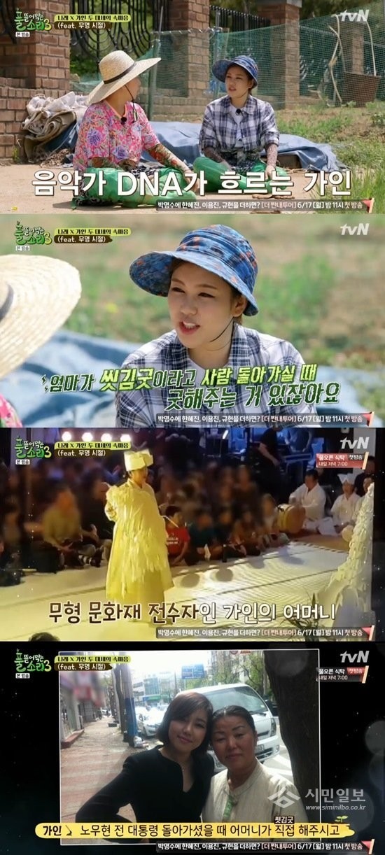 특히 송가인은 "엄마 때문에 판소리를 하게 됐다"며 "엄마가 씻김굿 무형문화재 전수자다. 노무현 전 대통령이 돌아가셨을 때도 어머니가 직접 씻김굿을 하시기도 했다. 어머니가 더 유명했다"고 밝혀 눈길을 끌었다.