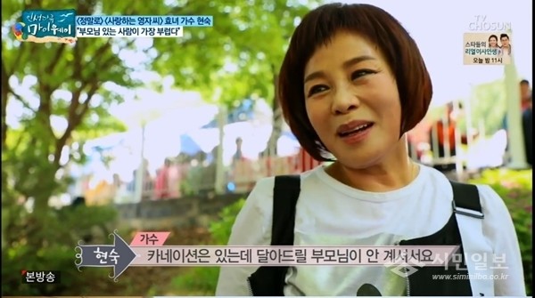 이어 "남들이 나에게 효녀가수라고 해도 나는 부모님이 안 계신다"며 "올해 어버이날은 많이 슬펐다. 카네이션은 있는데 달아드릴 부모님 안 계신다"고 말했다.