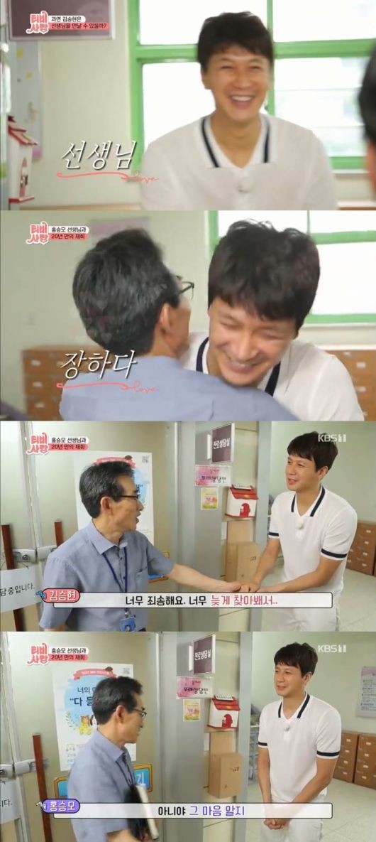19일 방송된 KBS 1TV 'TV는 사랑을 싣고'에서 김승현이 출연해 중, 고등학생 시절 자신을 아버지처럼 이끌어준 홍승모 선생님을 찾아나섰다.