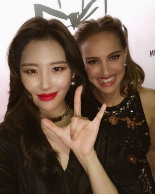 공개된 사진 속에는 선미가 한 행사장에서 할리우드 배우 나탈리 포트만을 만나 기념 셀카를 찍고 있는 모습이 담겨 있다. 선미의 화려한 미모가 시선을 끈다.