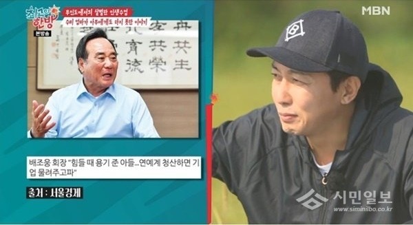 이에 탁재훈은 "저는 아버지하고 전혀 상관이 없다"고 말했다. 이어 그는 "그런데 얼마 전에 아버지 기사 하나가 났더라"고 운을 뗐다. 출연진들이 무슨 기사인지 궁금해하자 그는 "기사를 봤더니 아버지가 '아들이 연예인을 안 하면 회사를 물려줄 생각이 있다'고 돼 있었다"며 "그 기사를 보고 마음의 안정을 찾았다"고 덧붙여 출연진들이 폭소했다.