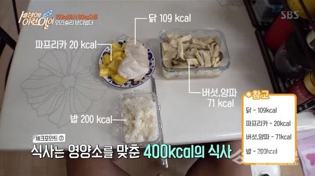 주인공은 매일 공복에 유산소 운동을 하며 하루를 시작했다. 채소와 닭가슴살, 흰쌀밥 150g 등 매 끼니 400 칼로리의 식단을 하루 4번 먹었다. 이는 폭식을 막고 요요현상을 막는 식습관이라고 주인공은 설명했다.