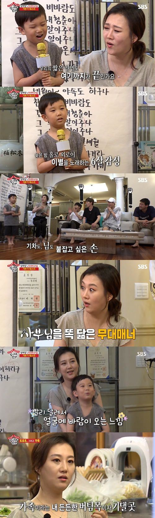 하지만 마이크를 잡은 연우 군은 '목포행 완행열차'를 나름의 구수한 가락으로 불러 모두를 놀라게 했다. 특히 노래 중간 손을 올리는 등 제스쳐도 취해 장윤정도 연상하게 했다.