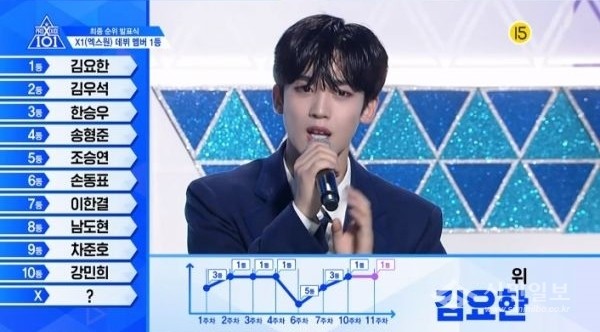이날 대망의 1위이자 엑스원의 최종 센터는 김요한이 차지했다.