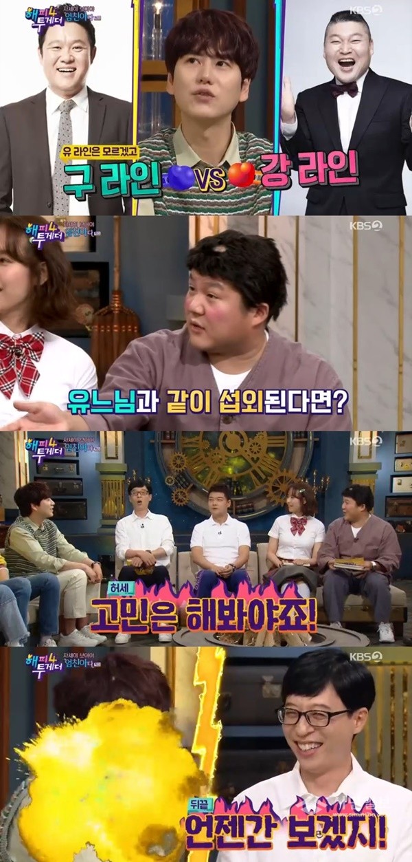 이날 유재석은 "그만큼 찾는 데는 이유가 있다"고 말했다. MC 조세호는 규현에게 "많은 사람들이 '유라인'인지 '강라인'인지 궁금해한다. 누구 '라인'이냐"고 물었다.