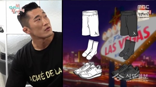 김동현은 "미국에서는 검은 바지에 검은 양말을 신는다"고 말했고, 매니저는 "처음 듣는 얘기다 잘못 알고 있는 것 같다"고 답했다. 매니저는 "김동현이 집착이 있다. 옷을 다 '깔맞춤'해서 입는 줄 아는데 촌스러운 공식"이라고 전했다.