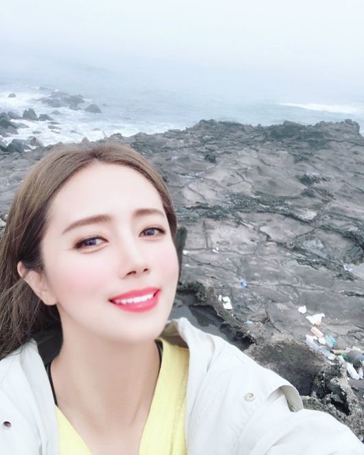 사진 속 최송현은 노란색 티셔츠에 베이지색 겉옷을 걸치고 해변가를 배경으로 카메라를 바라보고 있는 모습이었다.