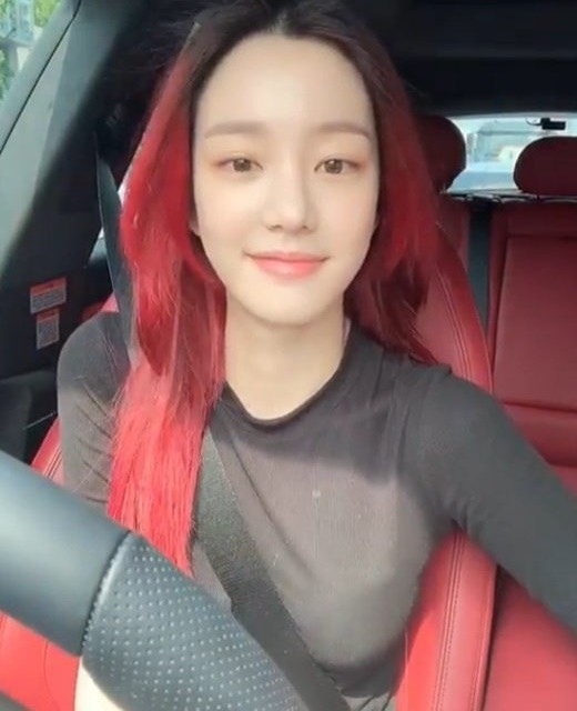 영상엔 머리를 빨갛게 물들인 채 운전석에 앉아 있는 이유비의 모습이 담겼다.
