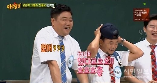 '아형' 멤버들은 "머리털은 안 자르냐"고 물어봤고, 양준혁은 "지금 얘 머리털 없다"라고 모자를 벗겨 웃음을 자아냈다.