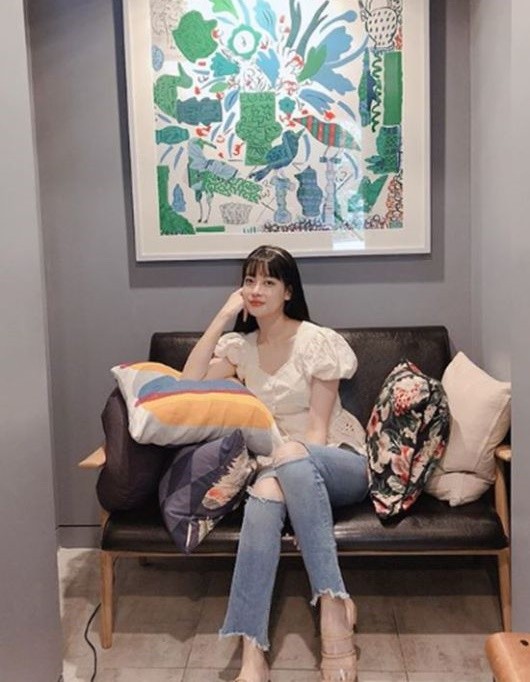 공개된 사진 속 오연서는 소파에 앉아 시간을 보내고 있는 모습이다.