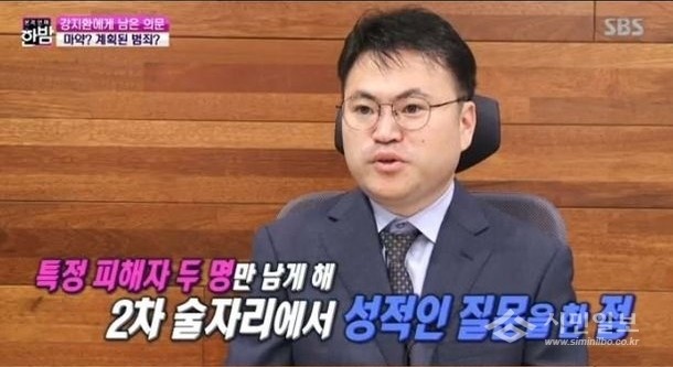 최근 방송된 SBS '본격연예 한밤'에는 강지환 성폭행 피해자 측이 우발적 성폭행이 아닌 계획적 범죄일 수 있다는 의혹을 다뤘다.