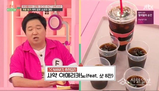 실제 재민이 즐겨 먹는 음식들이 스튜디오에 등장했다. 가장 먼저 소개된 건 8샷이 들어간 사약 아메리카노. MC들은 냄새만 맡고도 경악했다. 하지만 재민은 "저렇게 마시면 정신이 확 든다. 딱 적당하다"며 사약 아메리카노를 마셨다.