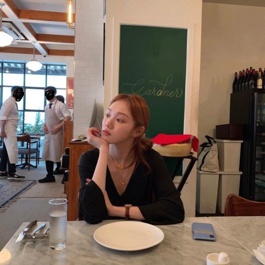 사진 속 이성경은 검은 브이넥 상의에 머리를 하나로 묶고 식당에 앉아있는 모습이다. 이성경은 여섯장의 사진에서 손을 이용한 여러가지 포즈를 취했다.