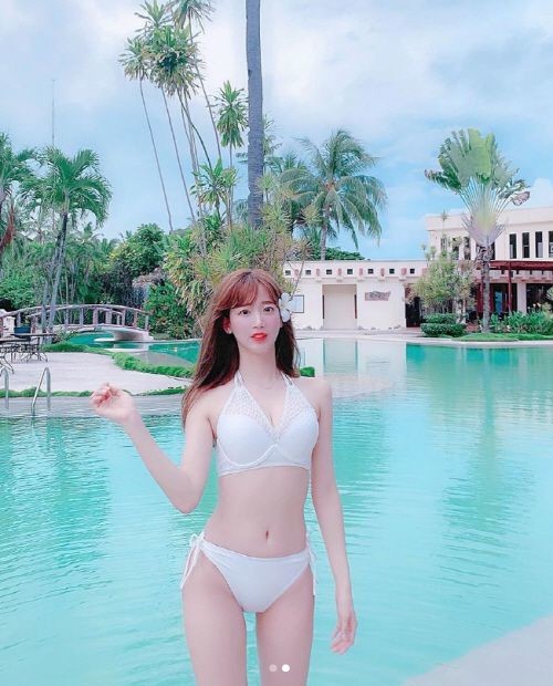 사진 속 김한나는 하얀 비키니를 입고 이국적인 배경을 바탕으로 카메라를 향해 미소짓고 있다. 청순한 외모와 완벽한 몸매가 어우러져 섹시한 매력을 뿜어낸다.