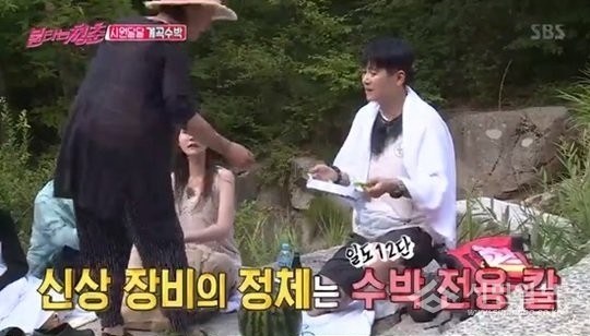 최민용은 계곡 소풍에 독특한 칼을 꺼냈고 “이게 수박을 한 번에 12조각으로 자를 수 있는 거다”고 말했다. 최성국은 “너와 반년 방송하면서 넌 중소기업중흥회에서 표창 한 번 줘야 한다”고 놀랐다.