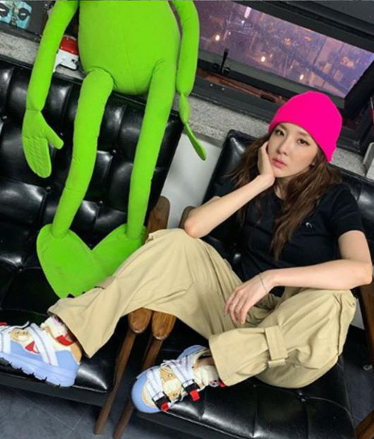 공개된 사진 속 산다라박은 의자에 앉아 포즈를 취하고 있는 모습이다. 산다라박은 검정 티셔츠에 카고바지를 매치, 스타일리쉬함을 뽐내고 있어 눈길을 끈다.